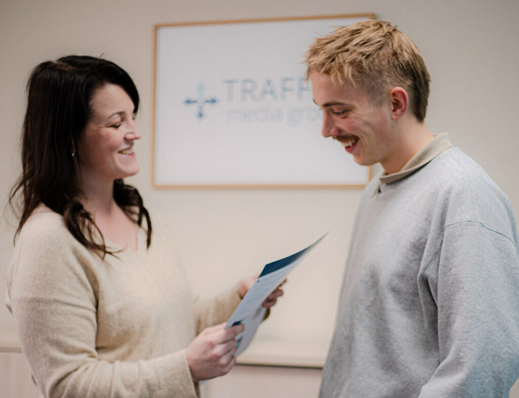 Wir bieten dir spannende Herausforderungen und ein inspirierendes Arbeitsumfeld. Tauche ein in die faszinierende Welt der Druckproduktion und entdecke bei TraffiC deine Leidenschaft für Print und crossmediale Kampagnen. Hier findest du nicht nur einen Job, sondern eine Karriere mit Perspektive. Lass uns gemeinsam neue Maßstäbe setzen und die Zukunft der Branche gestalten. Bereit für den nächsten Schritt? Erfahre mehr über unsere offenen Stellen und bewirb dich noch heute, um Teil unseres Erfolgsteams zu werden.